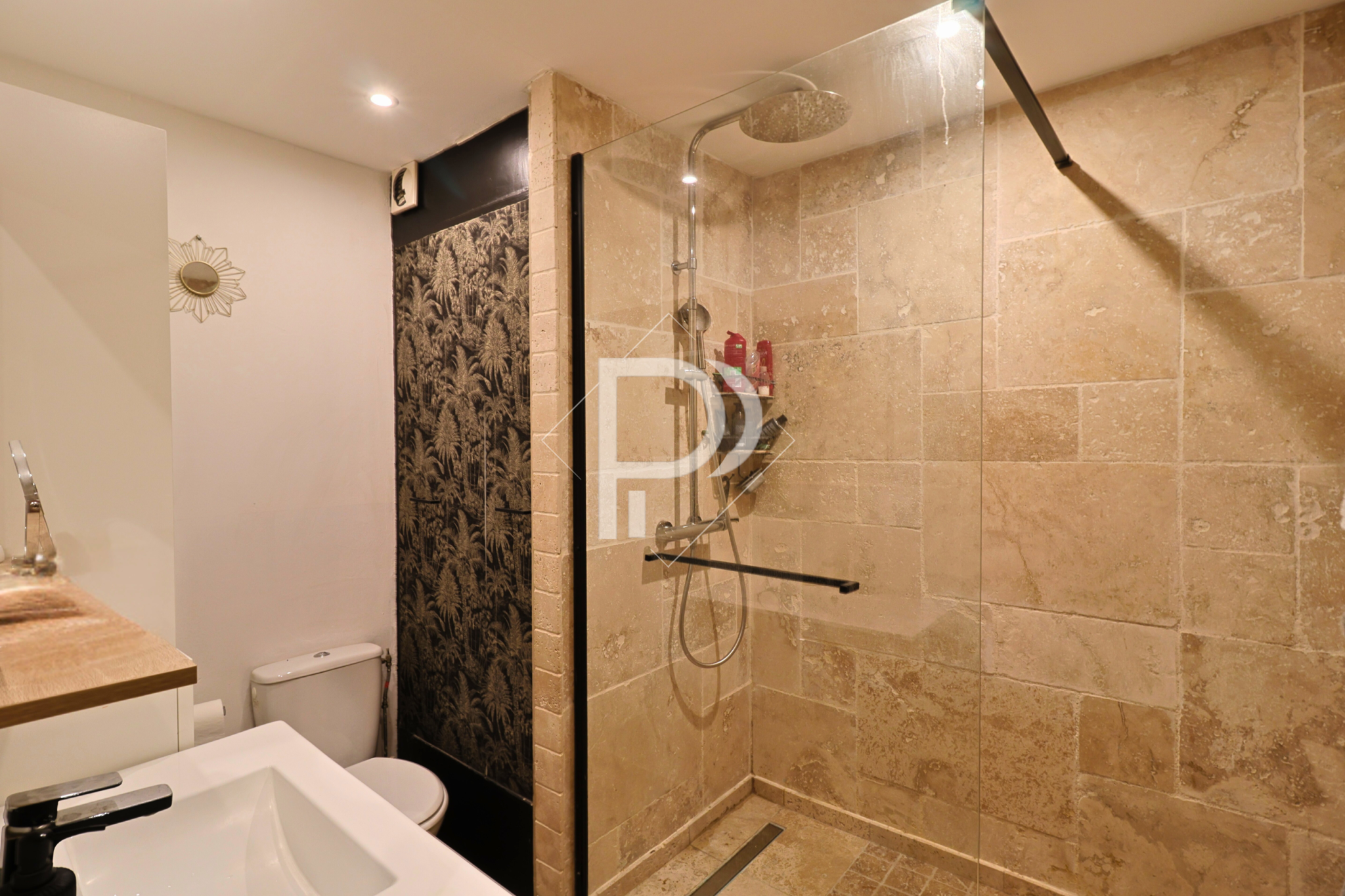 L’appartement dispose également d’une chambre spacieuse, d’une belle salle d’eau avec douche à l’italienne, ainsi que de la climatisation réversible dans le séjour et dans la chambre pour un confort toute l’année.