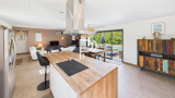 Villa moderne à deux pas du village Idéalement située à seulement quelques minutes à pied du centre du village, cette villa contemporaine de 140 m² séduit par son style raffiné et ses prestations de qualité. L’entrée s’ouvre sur un vaste séjour lumineux de 45 m², avec cuisine ouverte entièrement équipée, prolongé par un accès direct au jardin.Cet espace de vie intègre également une élégante cave à vin indépendante.