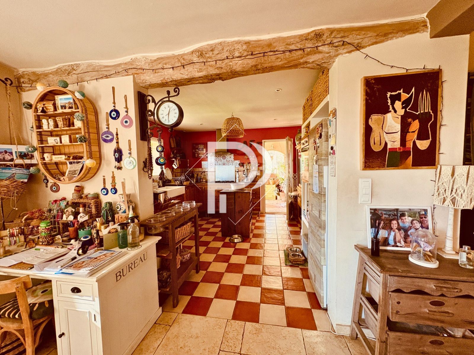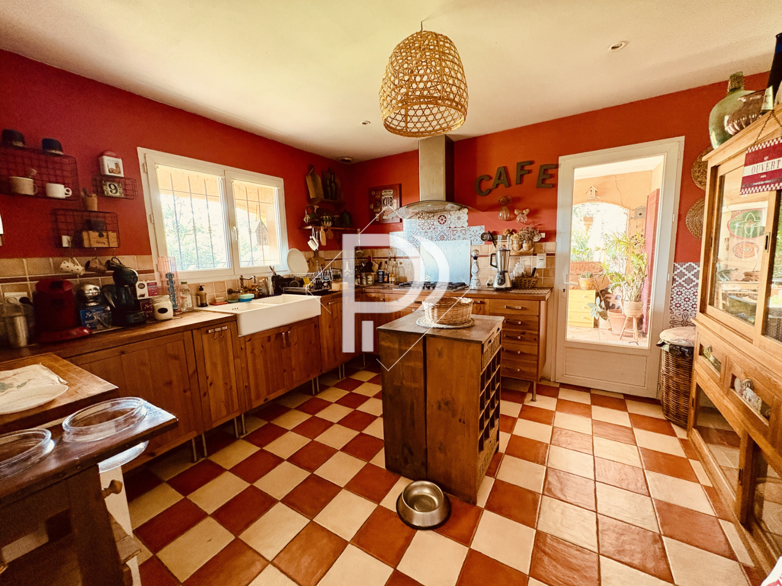 cuisine séparée ouvrant sur une terrasse couverte et d’une salle à